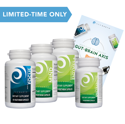 Specifically designed to support your gut-brain axis, this pack includes products that are known to be beneficial for your gut, your brain, and the information highway that connects them. The Gut-Brain Power Pack includes 1 bottle of Mind (90 capsules), 1 bottle of Focus, 1 bottle of Spectrabiotic, 1 bottle of Enzymes+, and our new Ebook “Your Guide to a Healthy Gut-Brain Axis.”